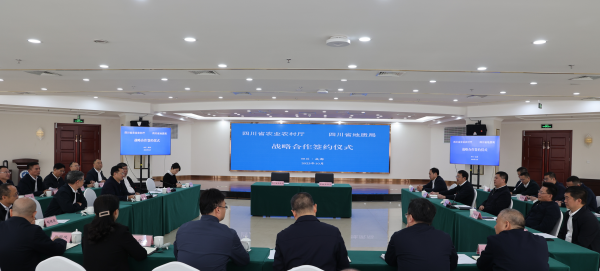 農業(yè)農村廳與省地質礦產勘查開發(fā)局在成都簽署戰(zhàn)略合作協(xié)議。農業(yè)農村廳黨組書記、廳長徐芝文,省地質礦產勘查開發(fā)局黨委書記、局長伍定出席簽約儀式并致辭。省地質礦產勘查開發(fā)局黨委副書記劉健,農業(yè)農村廳黨組副書記、副廳長、一級巡視員卿足平出席簽約儀式并見證協(xié)議簽署。農業(yè)農村廳黨組成員、副廳長伍修強與省地質礦產勘查開發(fā)局黨委委員、副局長單鑫分別代表雙方簽署協(xié)議。省地質礦產勘查開發(fā)局黨委委員、副局長李廷強,農業(yè)農村廳總農藝師徐斌出席簽約儀式。